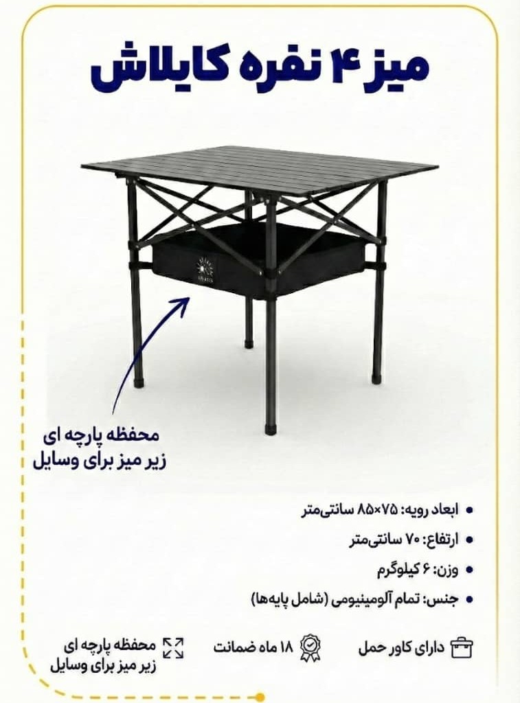 میز تاشو آلومینیومی کایلاش مدل 4 نفره